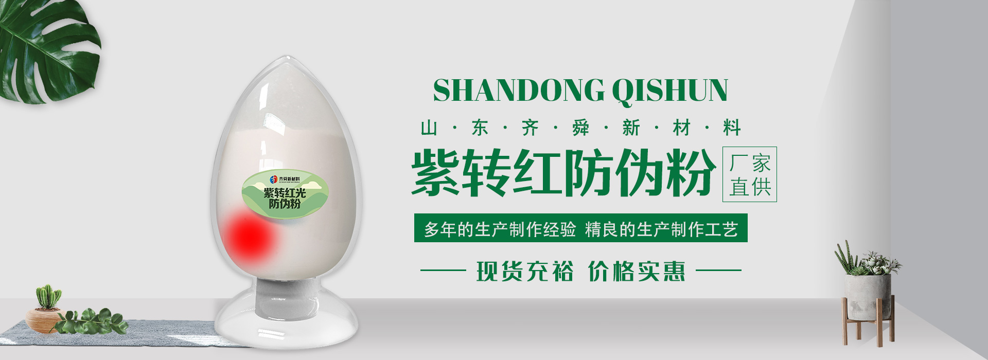 我公司前身為2011年成立的淄博舜明熒光科技有限公司。隨著公司的發(fā)展,廠址從淄博搬遷到青島,2020年5月公司重新注冊為山東齊舜新材料有限公司。公司注冊資本2000萬元,主要從事新材料研究和開發(fā)。目前主要產品包括:農膜用轉光粉、轉光母粒以及轉光農膜;農膜用長效防霧流滴涂覆液;復合肥添加劑及葉面肥(稀土微肥);防偽粉;LED封裝熒光粉;夜光粉;太陽能光伏電池增效熒光粉;鋰電池正極材料等。